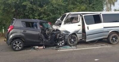 அதிவேகமாக வந்த கார் ஒன்றும் வேன் ஒன்றும் நேருக்கு நேர் மோதி விபத்துக்குள்ளாகியுள்ளன.