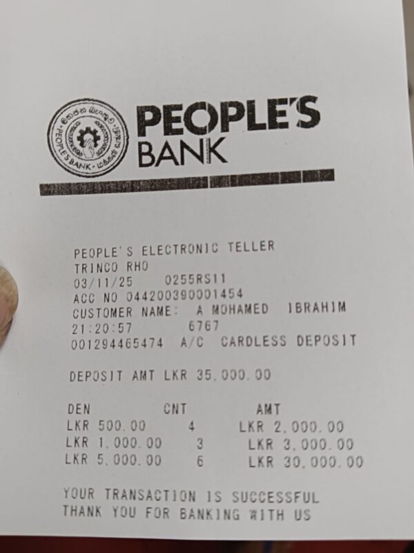 நாம் பதிவிட்டிருக்கின்ற புகைப்படத்தில் காணப்படும் விளம்பரத்தைப் பார்த்து நிலாவெளியைச் சேர்ந்த ஒருவர் 2025.11.03 திகதி அன்று விளம்பரக்காரர்களின் வேண்டுகோளுக்கிணங்க முற்ப் பணம் செலுத்தியதிலிருந்து தொடர்பை துண்டித்து விட்டார்கள்.