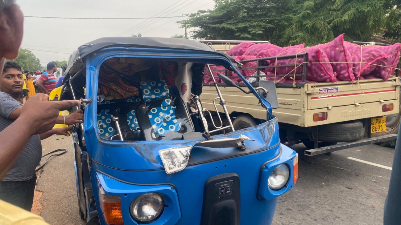 30.09.2025 இன்று திருகோணமலை மாவட்டம், திருகோணாமலையிலிருந்து புல்மோட்டை நோக்கி பயணித்த தனியார் பேருந்தின் மீது நிலாவளி பிரதான வீதியில் வைத்து முச்சக்கர வண்டி ஒன்று மோதியதில் முச்சக்கர வண்டி சாரதிக்கும் அவருடைய மகனுக்கும் பாரிய காயங்கள் ஏற்பட்டுள்ளது. முச்சக்கர வண்டி சாரதி திருமலை பொது வைத்தியசாலையில் அவசர சிகிச்சை பிரிவில் அனுமதிக்கப்பட்டுள்ளார். மேலும் எமது அப்பகுதி ஊடகவியலாளர் ஊடாக தெரிய வருவதாவது முச்சக்கர வண்டி சாரதி கடுமையான போதையின் இருந்துள்ளார்.
